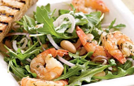 Roasted Rosemary Shrimp with Arugula & White Bean Salad