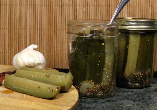 Wait 4-6 weeks before tasting to allow pickles to cure. Refrigerate after opening.