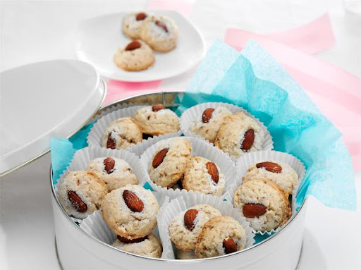 These horseshoe-shaped crescents have a moist and chewy interior that yields under a crunchy almond coating