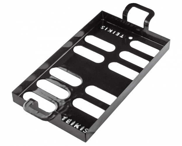 Durable porcelain coated steel holder provides easier, safer transport of salt plate from cooking surface to table. Handling a salt plate with the holder eliminates excess pressure to any one area of the plate while protecting fragile edges, extending the salt plate's useful life. 12.24 by 8.30 by .54 inches with 1.13 inch-wide cross bars.