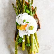- One pinch each cracked black pepper, asparagus, mushrooms, and whole fried eggs before serving