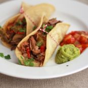 Tacos filled with tender shredded beef slow cooked in Mexican Coke with a delicious sauce made from chiles, tomatoe...