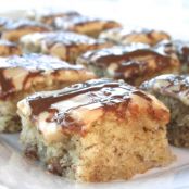 Moist Banana Bread Bars with Peanut Butter Frosting & Nutella Drizzle