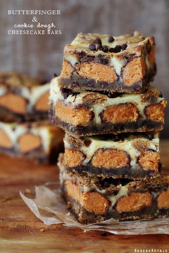 Butterfinger Cookie Dough Cheesecake Bars