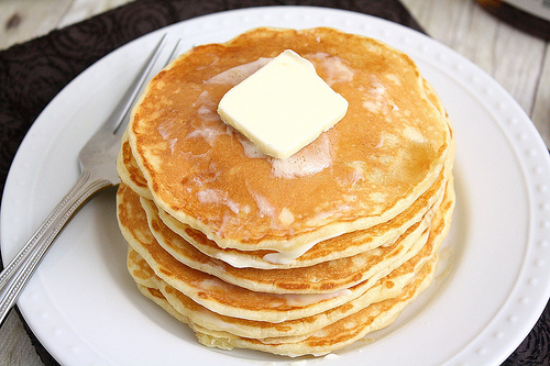 Two super foods in one delicious pancake -- blueberries and flax, and the buttermilk makes them light and fluffy