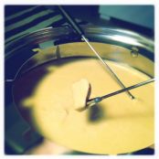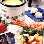 This is a basic recipe for cheese fondue that highlights a cheddar cheese, instead of a traditional swiss or gruyer...