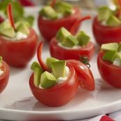 Cut a small slice off the top of each cherry tomato and hollow out the center of each, discarding the seeds and jui...