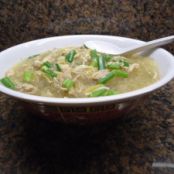 In a medium-sized pot, add the water, broth, chicken, ginger and garlic; cook until the chicken is very tender