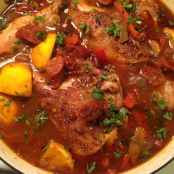 The Spanish version of Italian "Scarpariello" A great one pot dinner cobbled together with chicken, sausages, tomat...