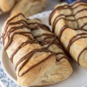 Crescent rolls filled with Nutella and fresh raspberries are baked to a golden brown and drizzled with sweet glaze