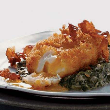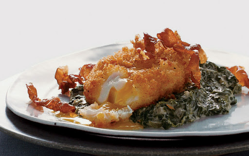 Deep-Fried Poached Eggs with Creamed Spinach & Serrano Ham