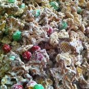 - 1 cup miniature chocolate covered peanut butter cups, halved