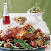 - 1 (11- to 13- pound) goose, fat removed from cavity; neck, gizzard ad heart reserved for goose stock