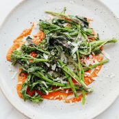 Grilled broccoli rabe is slightly charred creating a crunchy/tender texture and elevated even more with an awesome ...