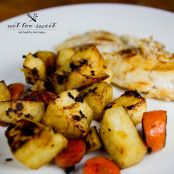 Preheat oven to 400°F. Slice and season jicama with onion powder, paprika and salt