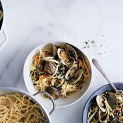 Put the clams in cool/cold salted water for a couple of hours, or more, prior to cooking so that they can eject any...