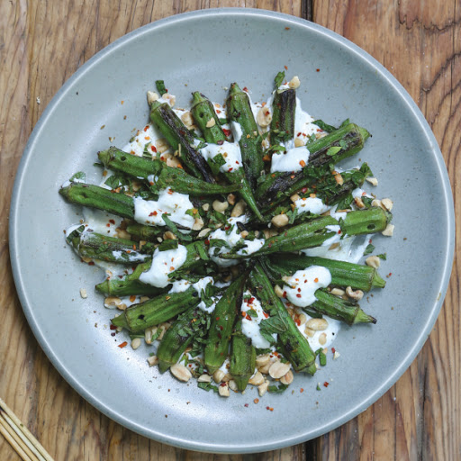 Stir-Fried Okra with Shallots, Chile, and Ginger