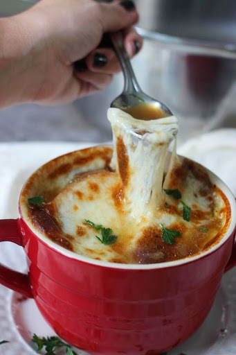 - 4 yellow onions, skins removed and thinly sliced into rings