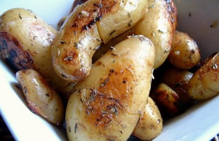This recipe for fingerling potatoes was adapted from Food Network. The original recipe uses Yukon Gold Potatoes, and a lot more olive oil than I would normally use. I love fingerling potatoes, so this is my preferred way to serve them.