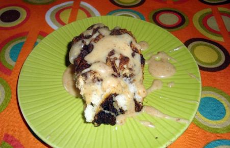 Rich, sweet biscuit dough is rolled around a chocolate, chile-cinnamon-pecan filling and glazed with a hazelnut praline frosting.