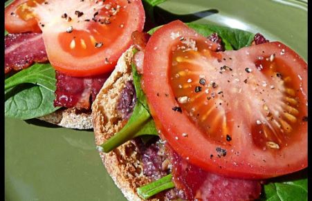 The idea and name came from the FlatBelly Diet cookbook, but I’ve seriously changed the recipe. In fact it isn’t really a BLT anymore. It’s a BST (the “S” is for spinach).