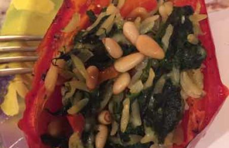 Roasted Red Peppers Stuffed w/ Spinach and Rice