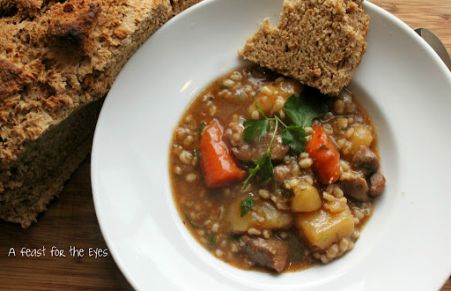 You don't have to wait until St. Patrick's Day to make this flavorful stew. Guinness Stout beer gives this stew a deep flavor, but doesn't dominate the blend of tender lamb (slow cooked for a few hours), hearty potatoes and carrots. Cooked barley is an optional ingredient, but add a lovely texture to the whole dish. Served with Irish Soda Bread, you have a heart dinner that's perfect for a Fall/Winter dinner. NOTE: I see no reason why this stew wouldn't be delicious if made with beef, instead of lamb.