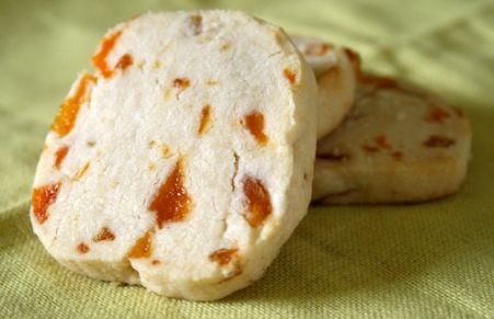 The shortbread cookies are studded with bright orange apricots and awesomely light. They're great with a little tea or coffee on the side.