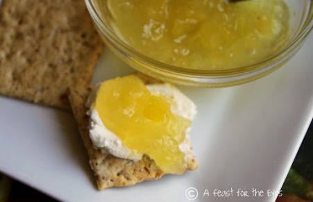 Making homemade pineapple is really easy to do. This recipe uses canned crushed pineapple, pineapple juice and pectin. Slather the jam on cream cheese and crackers and you have a fantastic appetizer/snack. I use this as a glaze for baked ham, too. Recipe is slightly adapted from Colleen's Recipes.