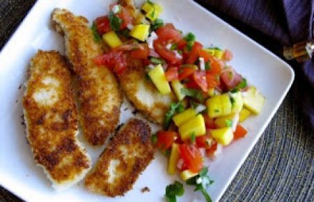 Chicken-Coconut Chicken Fingers with Mango Salsa