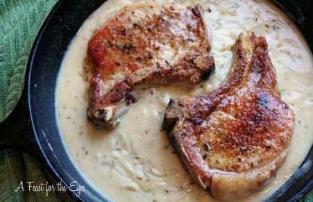 This is comfort food, at it's best. Pork chops are seared and roasted and smothered with plenty of onions. A quick pan sauce is made with buttermilk and chicken broth, and you have a dinner that is easy enough for a work night dinner!