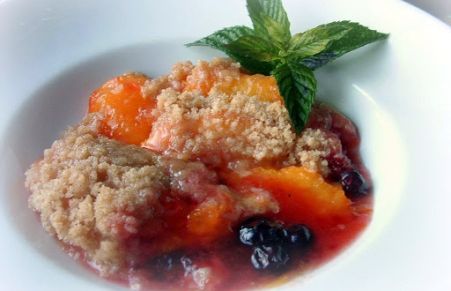 This peach and blueberry crumble recipe is easy and delicious - with just the right hint of cinnamon. Served with a scoop of ice cream, this is a wonderful summertime dessert.