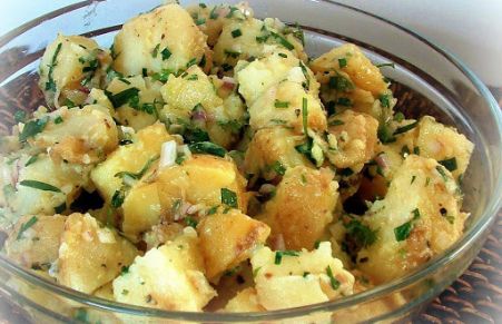 This is a healthier alternative to potato salad made with mayonnaise-- perfect for transporting to potlucks. It's very versatile, because you can adjust the herbs to those that you like best.