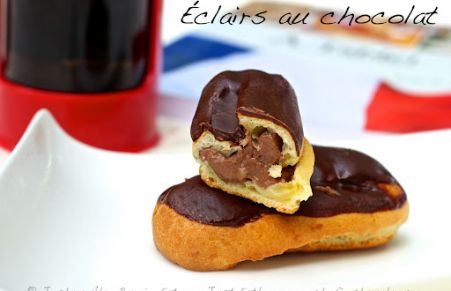 A delicious and sinful dark chocolate pastry cream perfect for some chocolate eclairs! Visit the source, Just Eat!, for a step-by-step pictorial recipe!