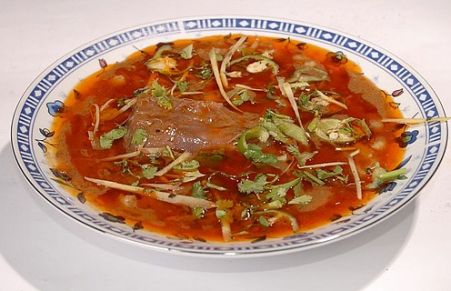 Nihari is a an ultimate meaty curry (made from beef bong/beef shanks). It is a very traditional dish of Pakistan. It is served on special occasions like Pakistani weddings, Eid celebrations etc. Eat this awesome dish with sprinkles of fresh lemon juice, coriander leaves (cilantro), and fine julienne slices of fresh ginger. Also it is best to eat nihari with hot breads like tandoori naan or chaptis, and also don't forget yogurt sauce (raita) and/or chutney!