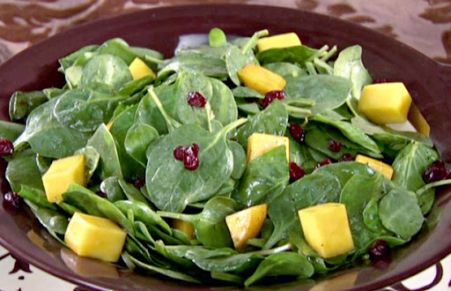 Spinach Salad with Mangos, Dried Cranberries and Chocolate Vinaigrette