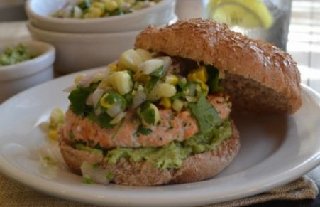 Tex Mex Salmon Burgers With Avocado Cream Spread