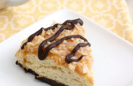 Enjoy the flavor of the popular Samoa Girl Scout cookies all year with homemade Samoa Scones! You can’t lose with the chocolate-caramel-coconut combo.
