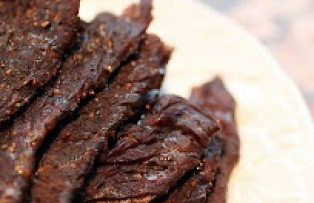 This is a straightforward recipe for beef jerky marinated in Worcestershire and A1 steak sauce, then dried in a dehydrator for six hours.