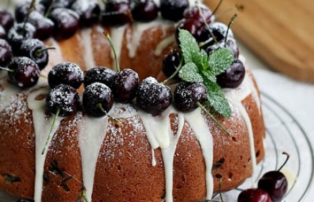 A beautiful, delicious cake that deserves to be the centerpiece of your Christmas table. Fresh cherries and mint put it over the top!