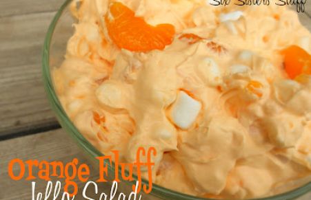 Retro Orange Fluff Jello Salad is fun to serve for salad -- or a refreshing dessert.