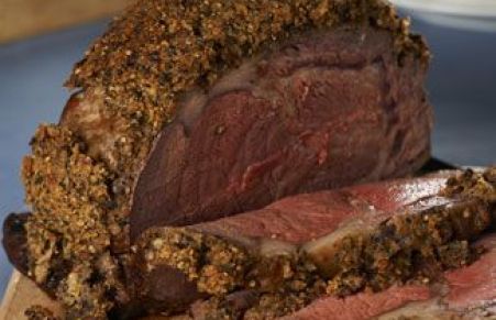 Prime Rib with a Peppercorn & Roasted Garlic Crust