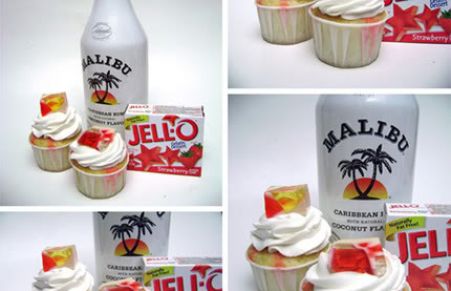 What fun! Jello Shot Cupcakes with Malibu coconut rum topped with whipped cream.