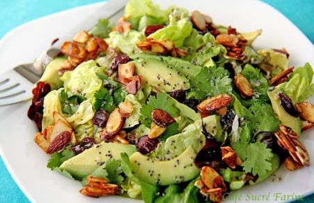 Cranberry-Avocado Salad with Candied Spiced Almonds and Sweet White Balsamic Vinaigrette