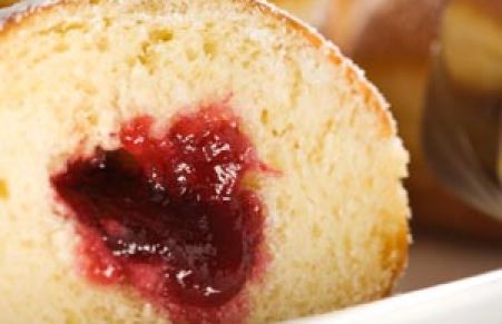 These are a cross between a fried jelly doughnut and a moist muffin. Fill them with your favorite jelly (mine is boysenberry).