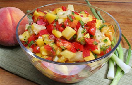 Use any fresh fruit in season, cut into small pieces. This salsa is wonderful in the summer with BBQ.
