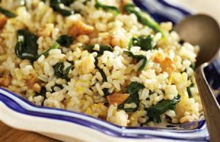 Brown Rice with Sauteed Spinach, Lemon and Garlic