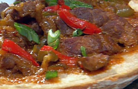 Round steak sliced into strips, seasoned with Emeril's famous Essence spice mixture and breaded, and cooked with aromatic vegetables to make a onion and pepper gravy.