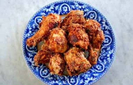 Recently at dinner my father instructed me, “tell your website readers that your dad says this is a good one.” Done, dad. This chicken was good – perfectly tender, well flavored, crunchy – just what one wants in fried chicken.