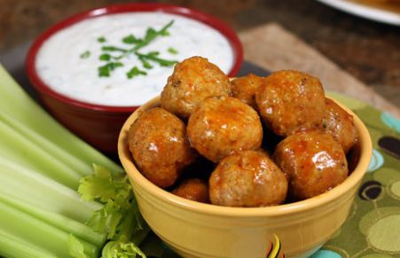 Chicken wings...in portable form! These spicy and delicious meatball poppers are perfect for hanging out with the family or to bring to a get together!